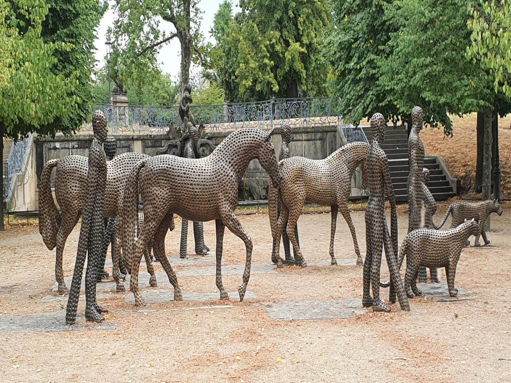 In het hart van een historische Europese stad bevindt zich een betoverende promenade, waar kunst en architectuur samenkomen in een harmonieuze dans. Langs deze promenade staan vier indrukwekkende sculpturen die de verschillende momenten van de dag symboliseren: ochtend, middag, avond en nacht. Deze beelden, meesterlijk vervaardigd door een gerenommeerde beeldhouwer, bieden een uniek en romantisch decor voor trouwfotoshoots.